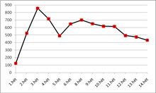 A grafikon a kérelmek benyújtásának időbeli menetét ábrázolja. A 4-5. héten tapasztalható visszaesés a helyhatósági választások idejére esik.