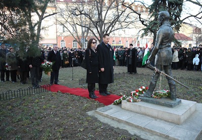 "Aki a múltját elfelejti, az nem méltó a jövőre sem" mondta ünnepi megemlékezése kezdetén Héder János, a Kárpátaljai Református Egyházkerület lelkészi főjegyzője, ungvári református lelkész, majd a 164 évvel ezelőtti események kapcsán kijelentette: "Mindig van zsarnokság, és a mai sem jobb, mert az istene a hatalom és a pénz bálványa, ezzel kell szembenéznie Magyarországnak, és ennek a következményeit mi is érezzük. Harcolni kell azonban nekünk is a megtartó értékeink iránti képmutató szeretet ellen. És harcolni kell a legnagyobb ellenség, a kényelem, a hitetlenség, a közömbösség ellen. Ma szülőföldünkön ezek a legnagyobb ellenségeink."